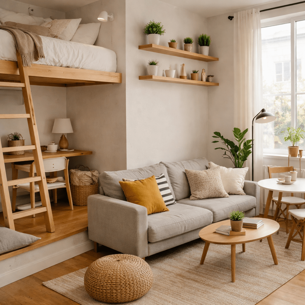 Decorating a small apartment is all about smart design choices. By maximizing vertical space, choosing multifunctional furniture, and using light colors and reflective surfaces, you can make even a tiny apartment feel spacious and inviting.